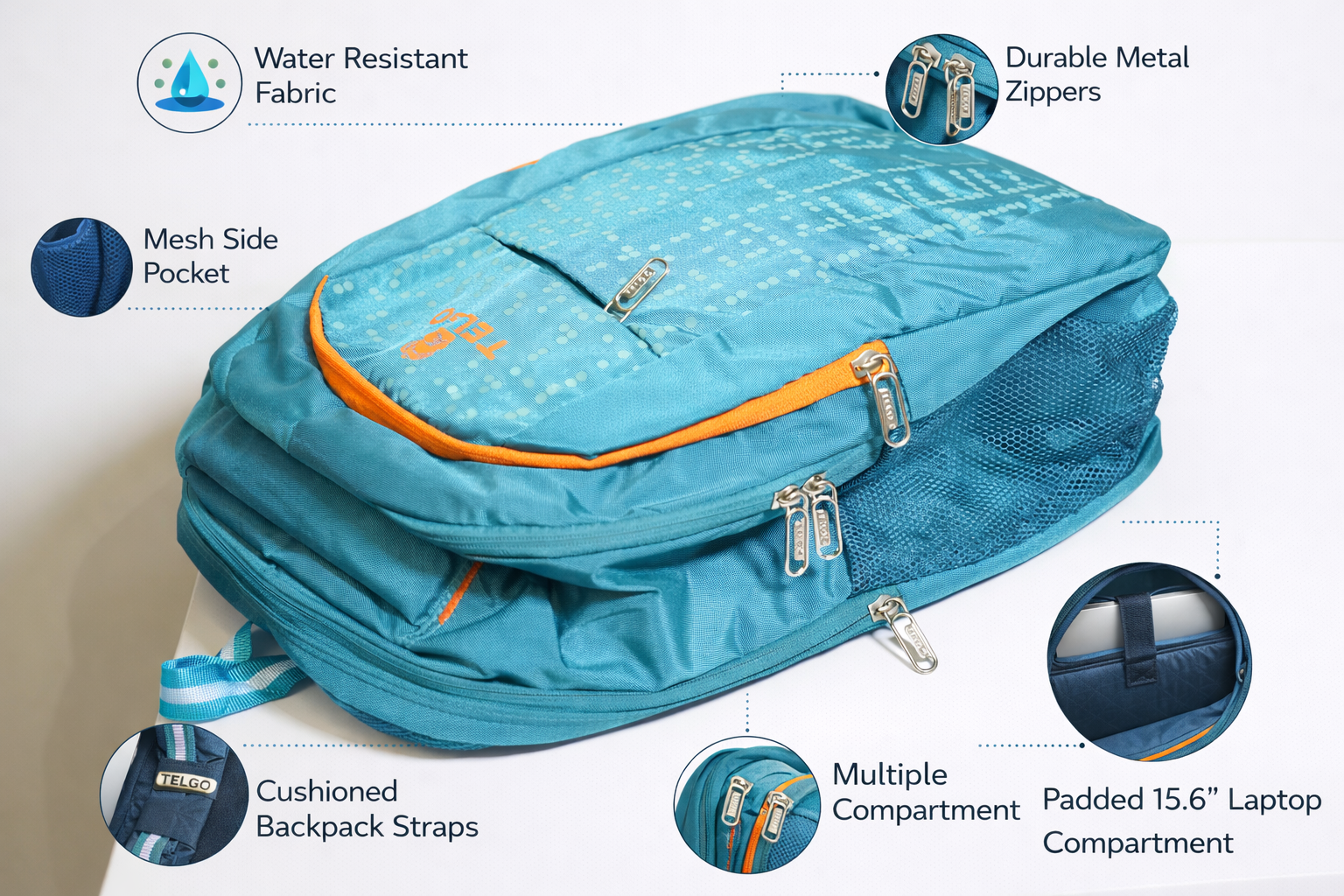 TELGO Multipurpose Sky Blue Backpack for Office, School & Travel